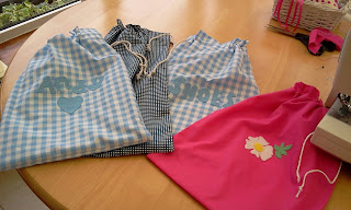 We are going on holiday shortly and I made these cute shoe bags out of fabric I already had and just to make them more interesting I appliqued them with scraps of felt, on the pink bag is a dog rose and leaf!